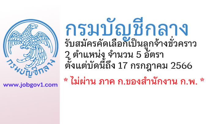 กรมบัญชีกลาง รับสมัครคัดเลือกเป็นลูกจ้างชั่วคราว 5 อัตรา ตั้งแต่บัดนี้ถึง 17 กรกฎาคม 2566
