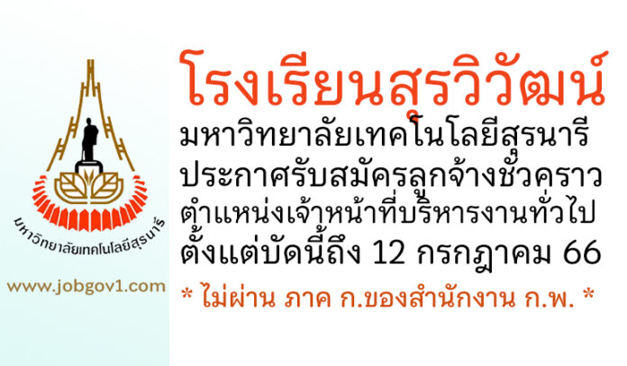 โรงเรียนสุรวิวัฒน์ มหาวิทยาลัยเทคโนโลยีสุรนารี รับสมัครลูกจ้างชั่วคราว ตำแหน่งเจ้าหน้าที่บริหารงานทั่วไป