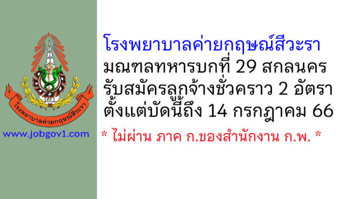 โรงพยาบาลค่ายกฤษณ์สีวะรา รับสมัครลูกจ้างชั่วคราว 2 อัตรา ตั้งแต่บัดนี้ถึง 14 กรกฎาคม 2566