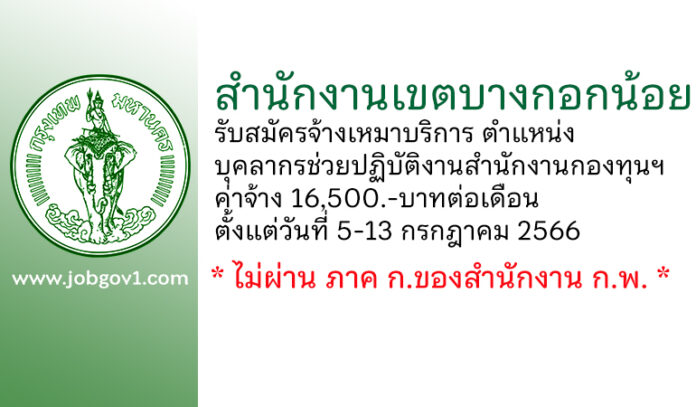 สำนักงานเขตบางกอกน้อย รับสมัครจ้างเหมาบริการ ตำแหน่งบุคลากรช่วยปฏิบัติงานสำนักงานกองทุนฯ ตั้งแต่วันที่ 5-13 กรกฎาคม 2566