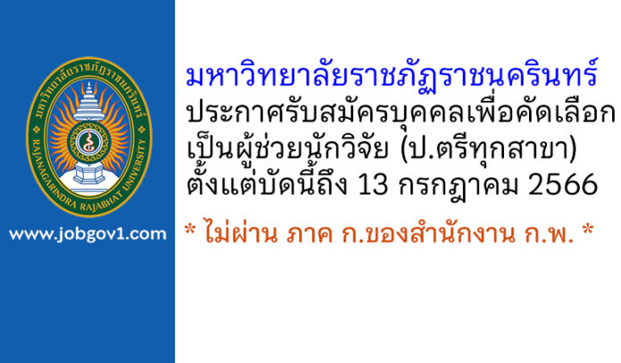 มหาวิทยาลัยราชภัฏราชนครินทร์ รับสมัครบุคคลเพื่อคัดเลือกเป็นผู้ช่วยนักวิจัย ตั้งแต่บัดนี้ถึง 13 กรกฎาคม 2566