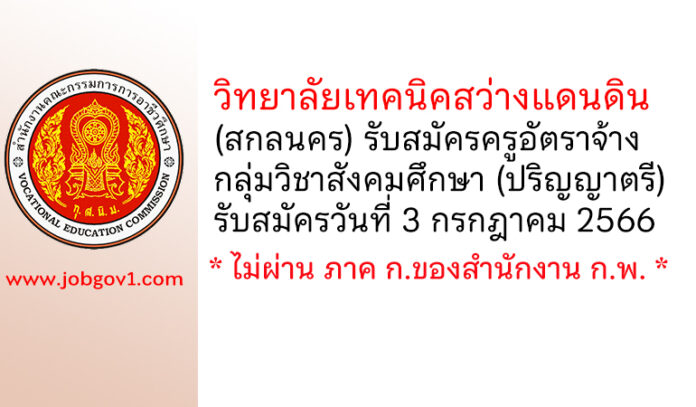 วิทยาลัยเทคนิคสว่างแดนดิน รับสมัครครูอัตราจ้าง กลุ่มวิชาสังคมศึกษา รับสมัครวันที่ 3 กรกฎาคม 2566
