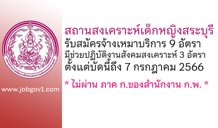 สถานสงเคราะห์เด็กหญิงสระบุรี รับสมัครจ้างเหมาบริการ 9 อัตรา ตั้งแต่บัดนี้ถึง 7 กรกฎาคม 2566