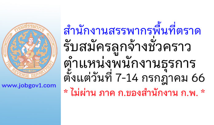 สำนักงานสรรพากรพื้นที่ตราด รับสมัครลูกจ้างชั่วคราว ตำแหน่งพนักงานธุรการ ตั้งแต่วันที่ 7-14 กรกฎาคม 2566