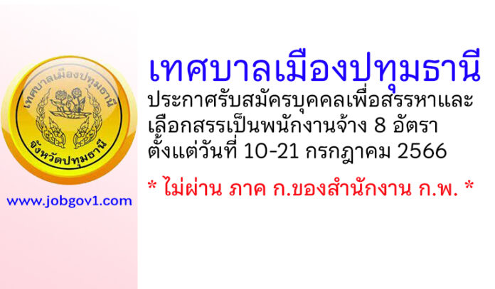 เทศบาลเมืองปทุมธานี รับสมัครบุคคลเพื่อสรรหาและเลือกสรรเป็นพนักงานจ้าง 8 อัตรา ตั้งแต่วันที่ 10-21 กรกฎาคม 2566