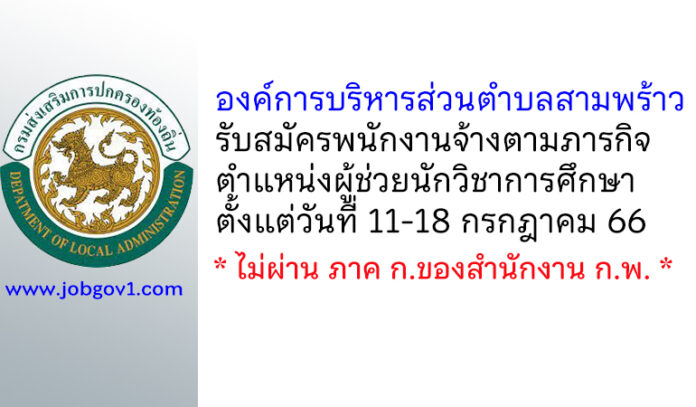 องค์การบริหารส่วนตำบลสามพร้าว รับสมัครพนักงานจ้างตามภารกิจ ตำแหน่งผู้ช่วยนักวิชาการศึกษา ตั้งแต่วันที่ 11-18 กรกฎาคม 2566