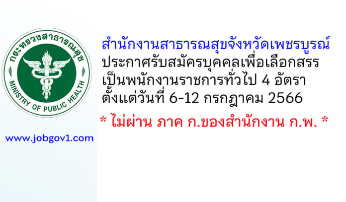 สำนักงานสาธารณสุขจังหวัดเพชรบูรณ์ รับสมัครบุคคลเพื่อเลือกสรรเป็นพนักงานราชการทั่วไป 4 อัตรา ตั้งแต่วันที่ 6-12 กรกฎาคม 2566