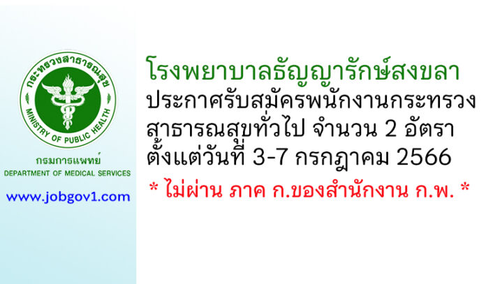 โรงพยาบาลธัญญารักษ์สงขลา รับสมัครพนักงานกระทรวงสาธารณสุขทั่วไป 2 อัตรา ตั้งแต่วันที่ 3-7 กรกฎาคม 2566