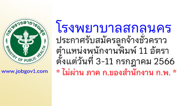 โรงพยาบาลสกลนคร รับสมัครลูกจ้างชั่วคราว ตำแหน่งพนักงานพิมพ์ 11 อัตรา ตั้งแต่วันที่ 3-11 กรกฎาคม 2566