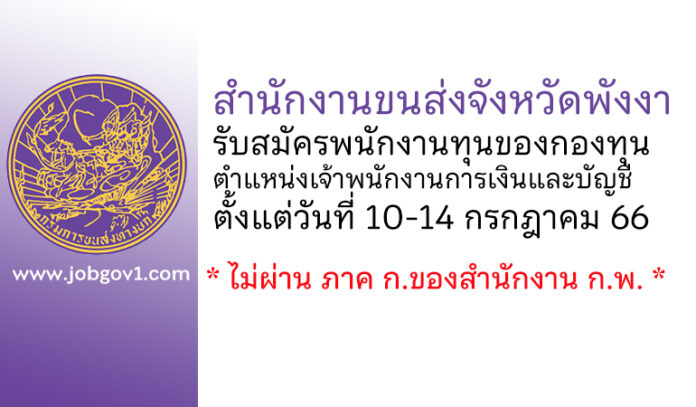 สำนักงานขนส่งจังหวัดพังงา รับสมัครพนักงานทุนของกองทุน ตำแหน่งเจ้าพนักงานการเงินและบัญชี ตั้งแต่วันที่ 10-14 กรกฎาคม 2566