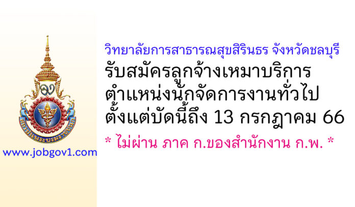วิทยาลัยการสาธารณสุขสิรินธร จังหวัดชลบุรี รับสมัครลูกจ้างเหมาบริการ ตำแหน่งนักจัดการงานทั่วไป ตั้งแต่บัดนี้ถึง 13 กรกฎาคม 2566