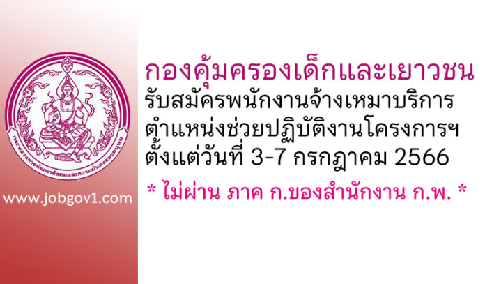 กองคุ้มครองเด็กและเยาวชน รับสมัครพนักงานจ้างเหมาบริการ ตำแหน่งช่วยปฏิบัติงานโครงการฯ ตั้งแต่วันที่ 3-7 กรกฎาคม 2566