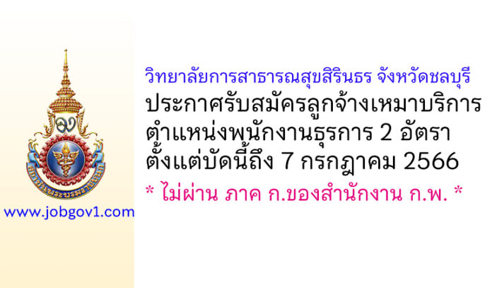 วิทยาลัยการสาธารณสุขสิรินธร จังหวัดชลบุรี รับสมัครลูกจ้างเหมาบริการ ตำแหน่งพนักงานธุรการ 2 อัตรา ตั้งแต่บัดนี้ถึง 7 กรกฎาคม 2566
