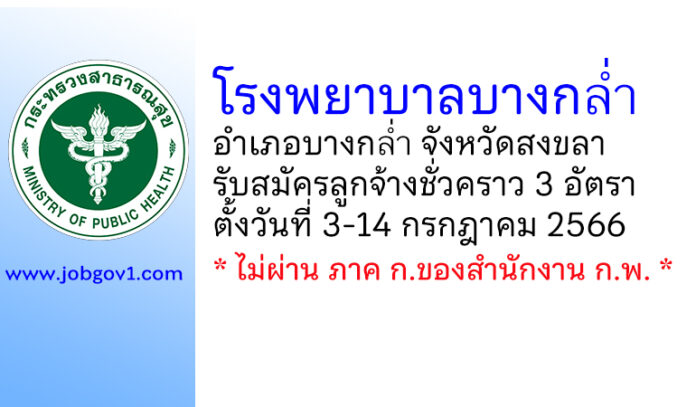โรงพยาบาลบางกล่ำ รับสมัครบุคคลเป็นลูกจ้างชั่วคราว 3 อัตรา ตั้งวันที่ 3-14 กรกฎาคม 2566