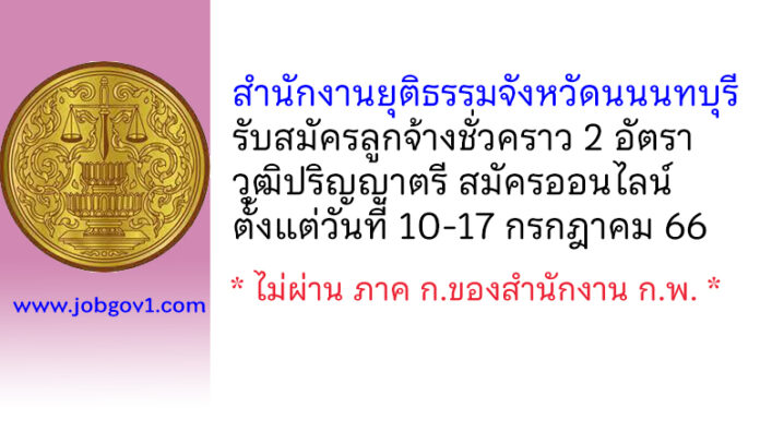 สำนักงานยุติธรรมจังหวัดนนนทบุรี รับสมัครลูกจ้างชั่วคราว 2 อัตรา ตั้งแต่วันที่ 10-17 กรกฎาคม 2566