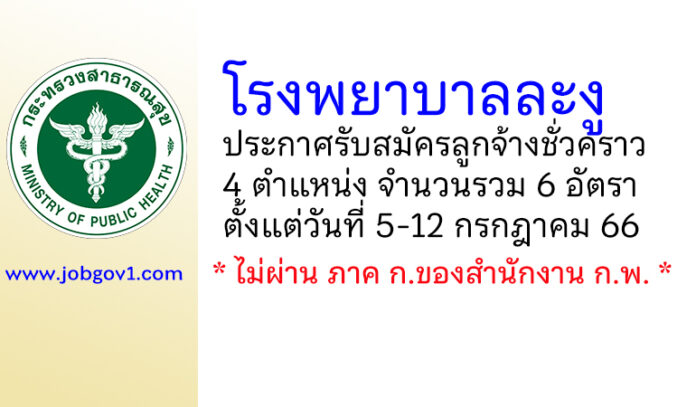 โรงพยาบาลละงู รับสมัครลูกจ้างชั่วคราว 4 ตำแหน่ง 6 อัตรา ตั้งแต่วันที่ 5-12 กรกฎาคม 2566