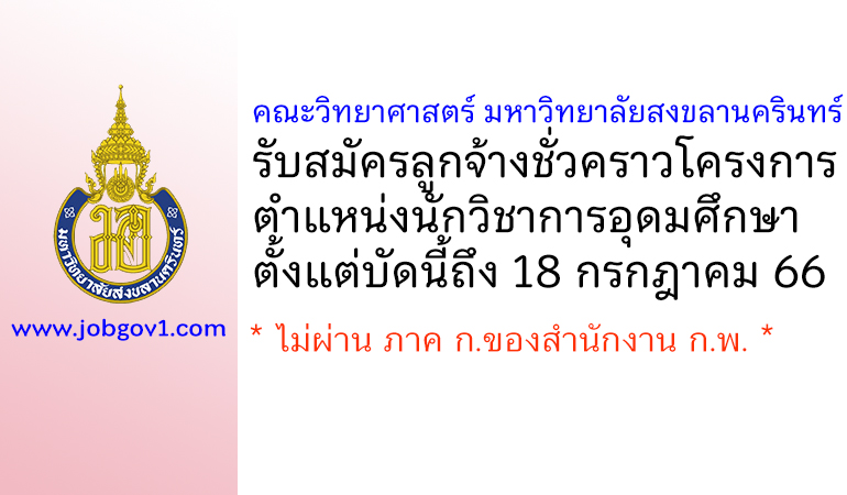 คณะวิทยาศาสตร์ มหาวิทยาลัยสงขลานครินทร์ รับสมัครลูกจ้างชั่วคราวโครงการ ตำแหน่งนักวิชาการอุดมศึกษา ตั้งแต่บัดนี้ถึง 18 กรกฎาคม 2566