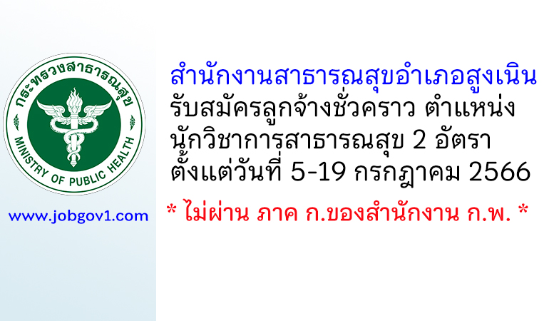 สำนักงานสาธารณสุขอำเภอสูงเนิน รับสมัครลูกจ้างชั่วคราว ตำแหน่งนักวิชาการสาธารณสุข 2 อัตรา ตั้งแต่วันที่ 5-19 กรกฎาคม 2566