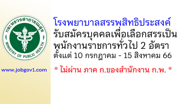 โรงพยาบาลสรรพสิทธิประสงค์ รับสมัครบุคคลเพื่อเลือกสรรเป็นพนักงานราชการทั่วไป 2 อัตรา ตั้งแต่ 10 กรกฎาคม – 15 สิงหาคม 2566
