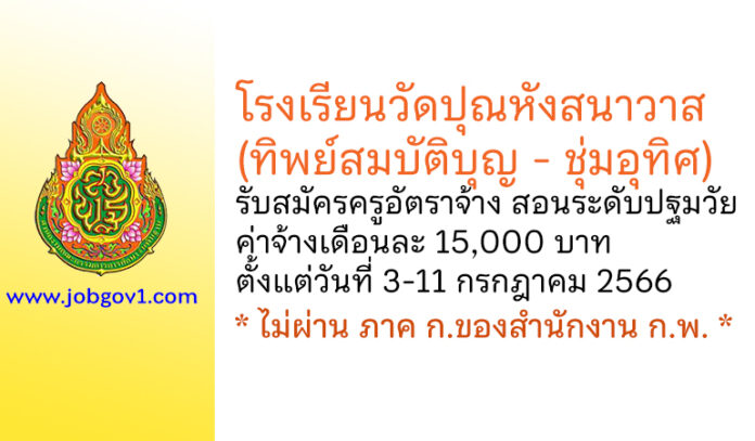 โรงเรียนวัดปุณหังสนาวาส (ทิพย์สมบัติบุญ – ชุ่มอุทิศ) รับสมัครครูอัตราจ้าง สอนระดับปฐมวัย ตั้งแต่วันที่ 3-11 กรกฎาคม 2566
