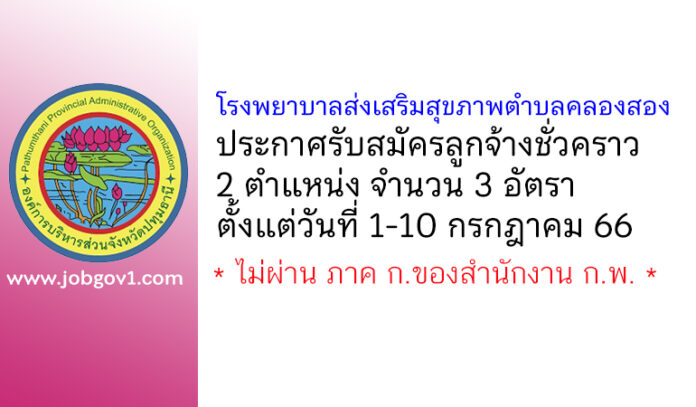 โรงพยาบาลส่งเสริมสุขภาพตำบลคลองสอง รับสมัครลูกจ้างชั่วคราว 3 อัตรา