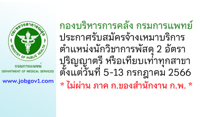 กองบริหารการคลัง กรมการแพทย์ รับสมัครจ้างเหมาบริการ ตำแหน่งนักวิชาการพัสดุ 2 อัตรา ตั้งแต่วันที่ 5-13 กรกฎาคม 2566