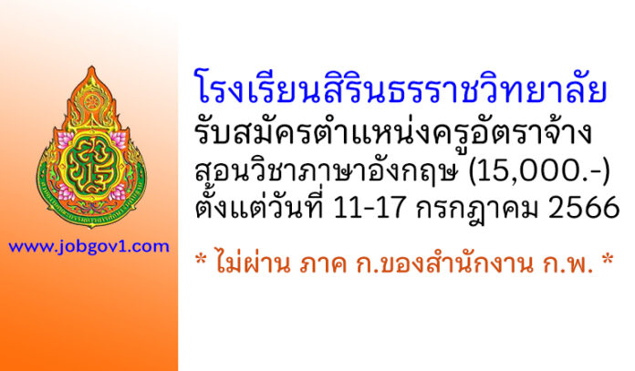 โรงเรียนสิรินธรราชวิทยาลัย รับสมัครครูอัตราจ้าง สอนวิชาภาษาอังกฤษ ตั้งแต่วันที่ 11-17 กรกฎาคม 2566