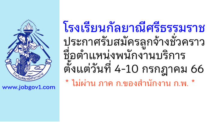 โรงเรียนกัลยาณีศรีธรรมราช รับสมัครลูกจ้างชั่วคราว ตำแหน่งพนักงานบริการ ตั้งแต่วันที่ 4-10 กรกฎาคม 2566