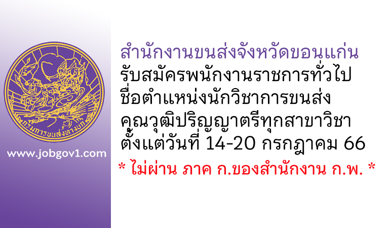 สำนักงานขนส่งจังหวัดขอนแก่น รับสมัครพนักงานราชการทั่วไป ตำแหน่งนักวิชาการขนส่ง ตั้งแต่วันที่ 14-20 กรกฎาคม 2566