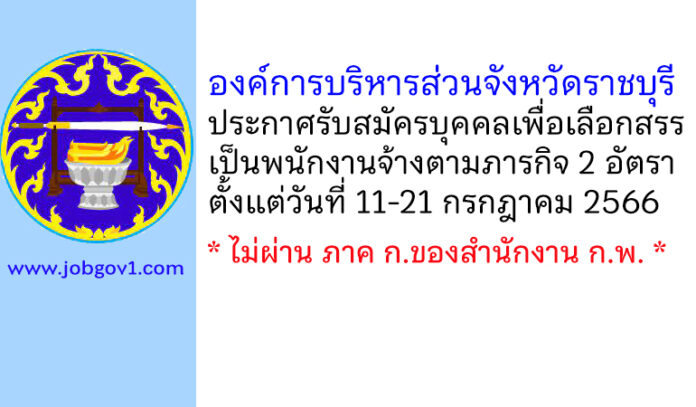 องค์การบริหารส่วนจังหวัดราชบุรี รับสมัครบุคคลเพื่อเลือกสรรเป็นพนักงานจ้างตามภารกิจ 2 อัตรา ตั้งแต่วันที่ 11-21 กรกฎาคม 2566