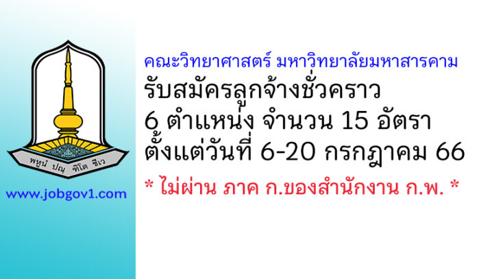 คณะวิทยาศาสตร์ มหาวิทยาลัยมหาสารคาม รับสมัครลูกจ้างชั่วคราว 15 อัตรา ตั้งแต่วันที่ 6-20 กรกฎาคม 2566