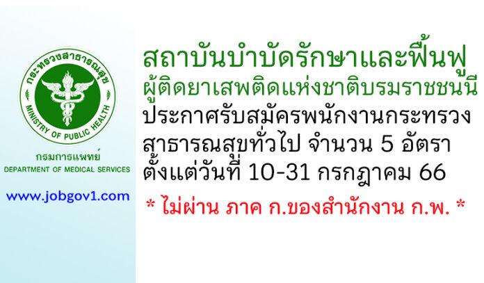 สถาบันบำบัดรักษาและฟื้นฟูผู้ติดยาเสพติดแห่งชาติบรมราชชนนี รับสมัครพนักงานกระทรวงสาธารณสุขทั่วไป 5 อัตรา ตั้งแต่วันที่ 10-31 กรกฎาคม 2566