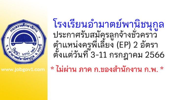 โรงเรียนอำมาตย์พานิชนุกูล เปิดรับสมัครลูกจ้างชั่วคราว ตำแหน่งครูพี่เลี้ยง (EP) 2 อัตรา ตั้งแต่วันที่ 3-11 กรกฎาคม 2566