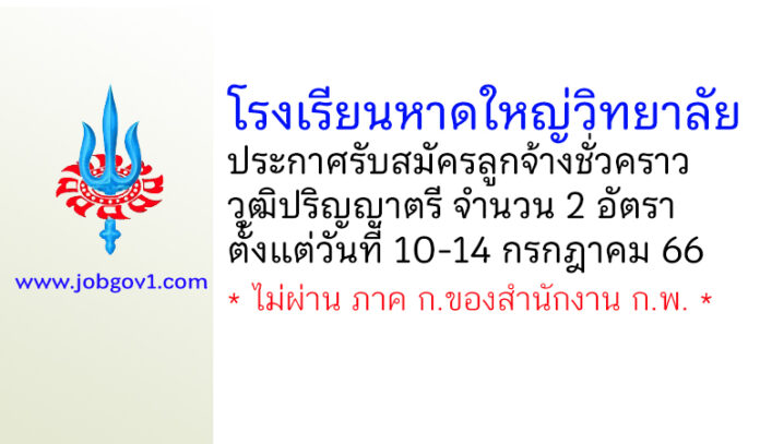 โรงเรียนหาดใหญ่วิทยาลัย รับสมัครลูกจ้างชั่วคราว 2 อัตรา ตั้งแต่วันที่ 10-14 กรกฎาคม 2566