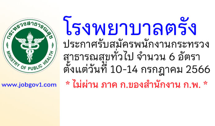 โรงพยาบาลตรัง รับสมัครพนักงานกระทรวงสาธารณสุขทั่วไป 6 อัตรา ตั้งแต่วันที่ 10-14 กรกฎาคม 2566