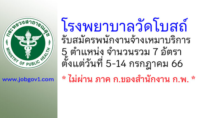 โรงพยาบาลวัดโบสถ์ รับสมัครพนักงานจ้างเหมาบริการ 5 ตำแหน่ง 7 อัตรา