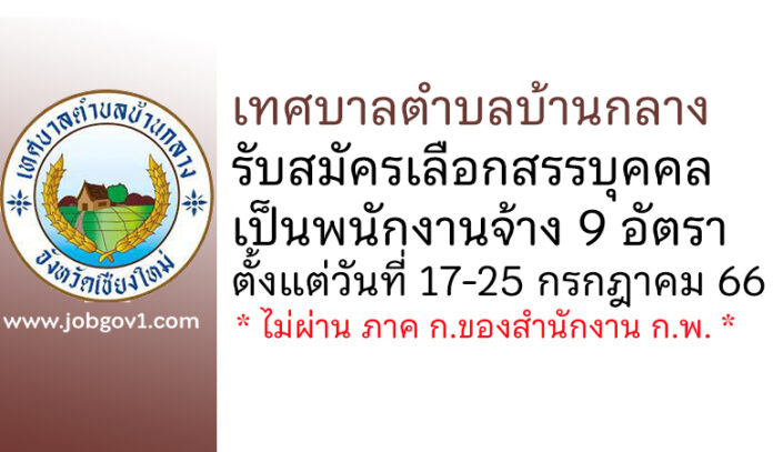 เทศบาลตำบลบ้านกลาง รับสมัครเลือกสรรบุคคลเป็นพนักงานจ้าง 9 อัตรา
