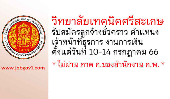วิทยาลัยเทคนิคศรีสะเกษ รับสมัครลูกจ้างชั่วคราว ตำแหน่งเจ้าหน้าที่ธุรการ งานการเงิน
