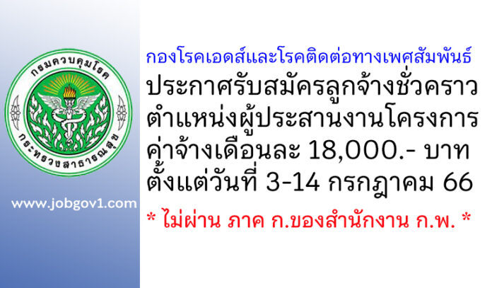กองโรคเอดส์และโรคติดต่อทางเพศสัมพันธ์ รับสมัครลูกจ้างชั่วคราว ตำแหน่งผู้ประสานงานโครงการ