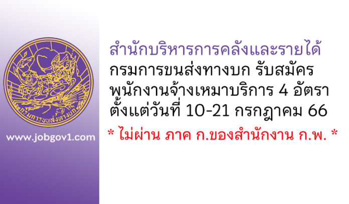 สำนักบริหารการคลังและรายได้ กรมการขนส่งทางบก รับสมัครพนักงานจ้างเหมาบริการรายบุคคล 4 อัตรา