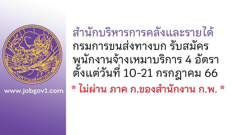 สำนักบริหารการคลังและรายได้ กรมการขนส่งทางบก รับสมัครพนักงานจ้างเหมาบริการรายบุคคล 4 อัตรา ตั้งแต่วันที่ 10-21 กรกฎาคม 2566