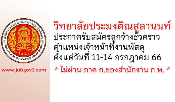 วิทยาลัยประมงติณสูลานนท์ รับสมัครลูกจ้างชั่วคราว ตำแหน่งเจ้าหน้าที่งานพัสดุ ตั้งแต่วันที่ 11-14 กรกฎาคม 2566