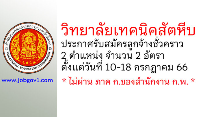วิทยาลัยเทคนิคสัตหีบ รับสมัครลูกจ้างชั่วคราว 2 อัตรา ตั้งแต่วันที่ 10-18 กรกฎาคม 2566