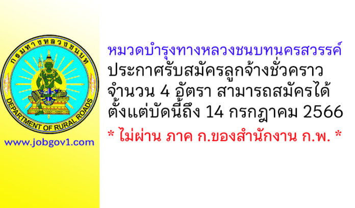หมวดบำรุงทางหลวงชนบทนครสวรรค์ รับสมัครลูกจ้างชั่วคราว 4 อัตรา ตั้งแต่บัดนี้ถึง 14 กรกฎาคม 2566