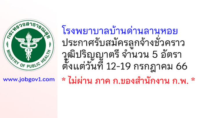 โรงพยาบาลบ้านด่านลานหอย รับสมัครลูกจ้างชั่วคราว 5 อัตรา ตั้งแต่วันที่ 12-19 กรกฎาคม 2566