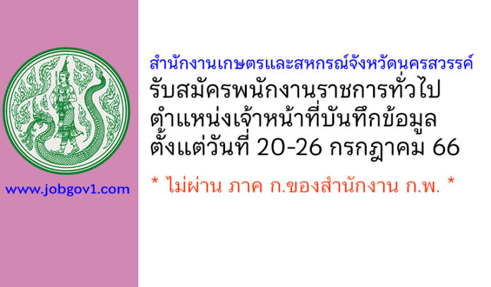 สำนักงานเกษตรและสหกรณ์จังหวัดนครสวรรค์ รับสมัครพนักงานราชการทั่วไป ตำแหน่งเจ้าหน้าที่บันทึกข้อมูล