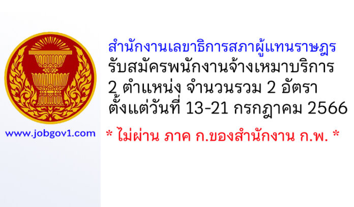สำนักงานเลขาธิการสภาผู้แทนราษฎร รับสมัครพนักงานจ้างเหมาบริการ 2 อัตรา ตั้งแต่วันที่ 13-21 กรกฎาคม 2566
