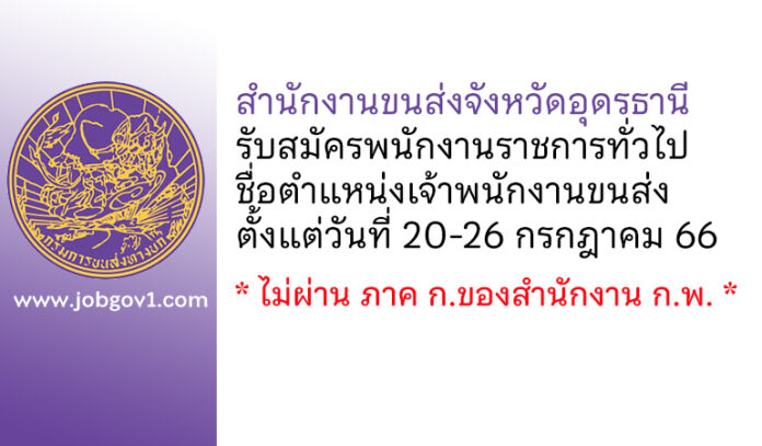 ประกาศสำนักงานขนส่งจังหวัดอุดรธานี เรื่อง รับสมัครบุคคลเพื่อเลือกสรรเป็นพนักงานราชการทั่วไป ตำแหน่ง เจ้าพนักงานขนส่ง