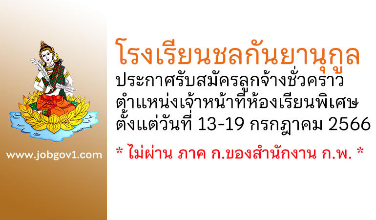 โรงเรียนชลกันยานุกูล รับสมัครลูกจ้างชั่วคราว ตำแหน่งเจ้าหน้าที่ห้องเรียนพิเศษ ตั้งแต่วันที่ 13-19 กรกฎาคม 2566