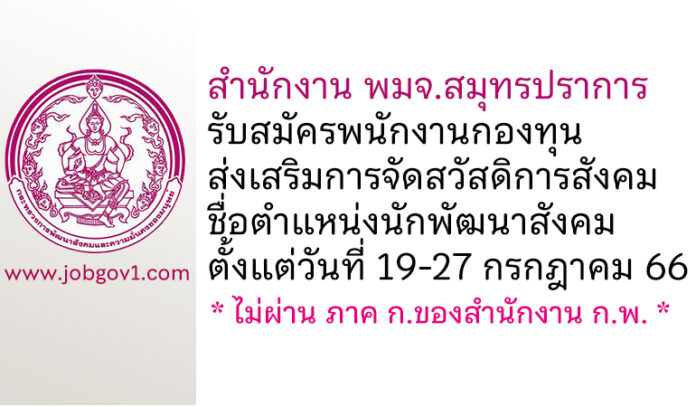 สำนักงาน พมจ.สมุทรปราการ รับสมัครพนักงานกองทุนส่งเสริมการจัดสวัสดิการสังคม ตำแหน่งนักพัฒนาสังคม ตั้งแต่วันที่ 19-27 กรกฎาคม 2566